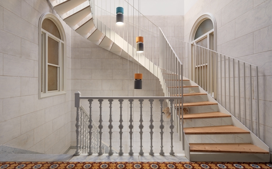 Martí aimed to achieve two goals with the project. First, to conserve the building’s original finishes, including mosaic tile, parquet wood floors, stucco walls, and original paintings on wooden beams. Second, to fill the building with “light and life.”