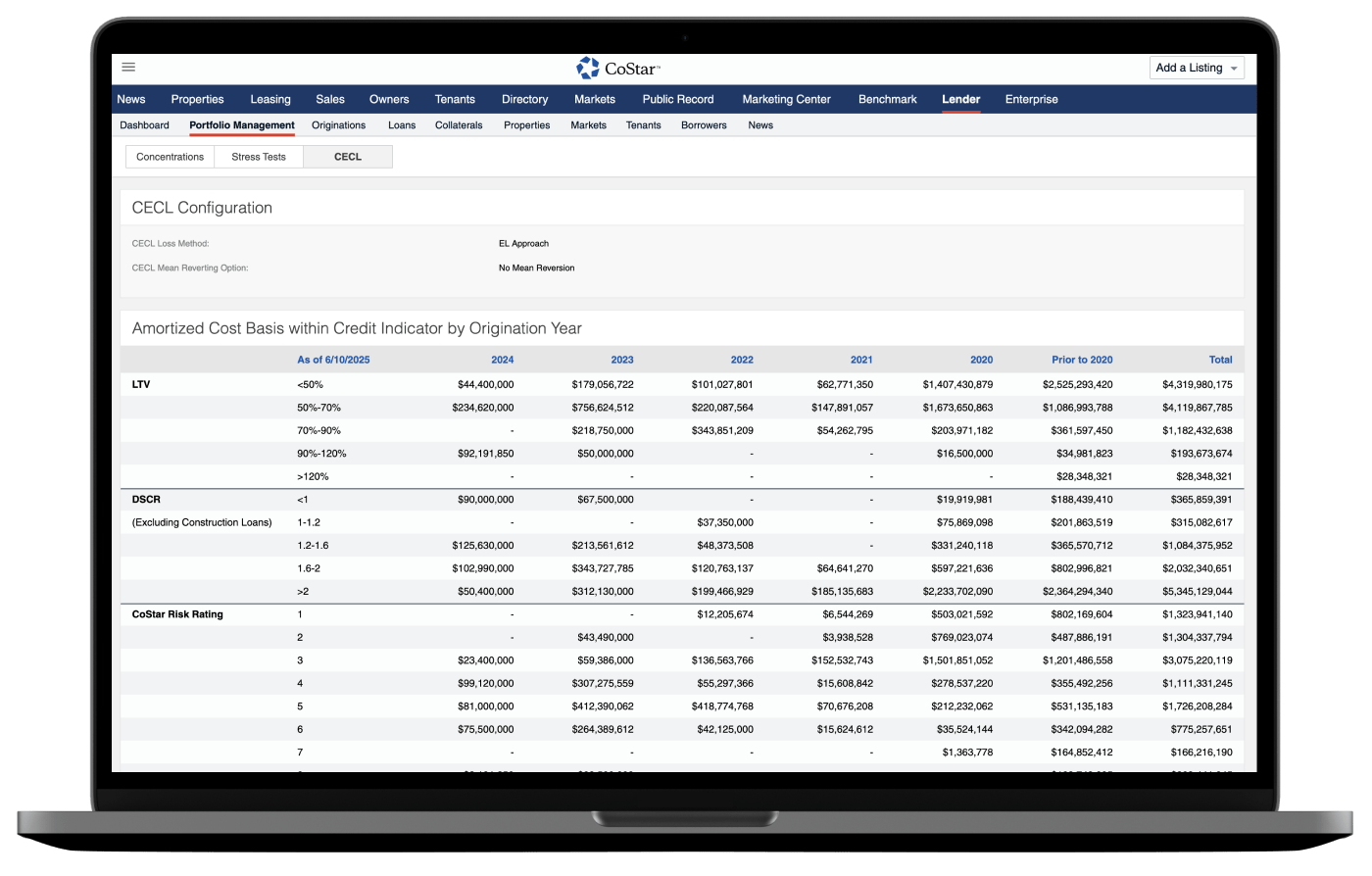 As a long-term client of CoStar and its products, we chose Compass as the ideal tool in helping us understand and manage our credit risk book as well as meet our reserving requirements. Our decision was based on best-in-class commercial real estate data combined with a robust and tenured model. Our adoption of CECL reserving methodology was seamless and the CoStar team was very responsive and supportive of our specific needs, including a custom calibration of our loss history.