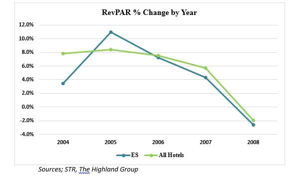 During the last expansion period for the hotel industry, which effectively ended in 2008, extended-stay hotel room supply increased at three to four times the rate of overall hotel room supply.