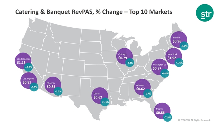 Among major markets, F&B performance decreases were common as Group business in the combined Luxury and Upper Upscale hotel segments declined. Of note, the Atlanta, Chicago and Miami markets experienced a decrease in all Group segment key performance indicators—room night demand, rooms revenue and catering-and-banquets RevPAS.