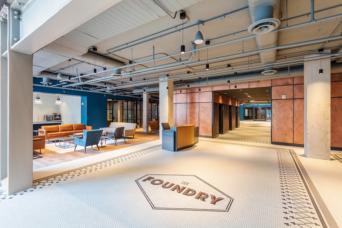 Zoom In: Designed by Cooper Carry and constructed by Balfour Beatty, The Foundry's innovative building design earned it several accolades, including the 2021 ENR Mid-Atlantic Best Projects Award of Merit in Renovation/Restoration and the 2020 NAIOP North Virginia Award for Best Building in the adaptive reuse category. The property includes studio to three-bedroom apartments and features a three-story gym, spin and yoga studios, a rooftop pool and terrace and an indoor dog park.