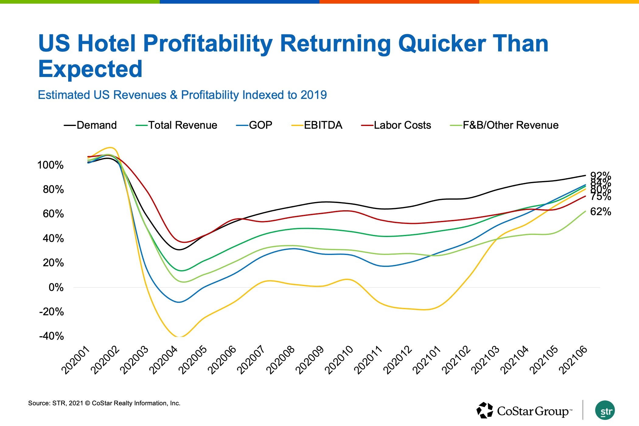 Hotel profitability has come a long way since the emergence of the COVID-19 pandemic, and particularly in the past few months, according to data from STR, CoStar's hospitality analytics firm.