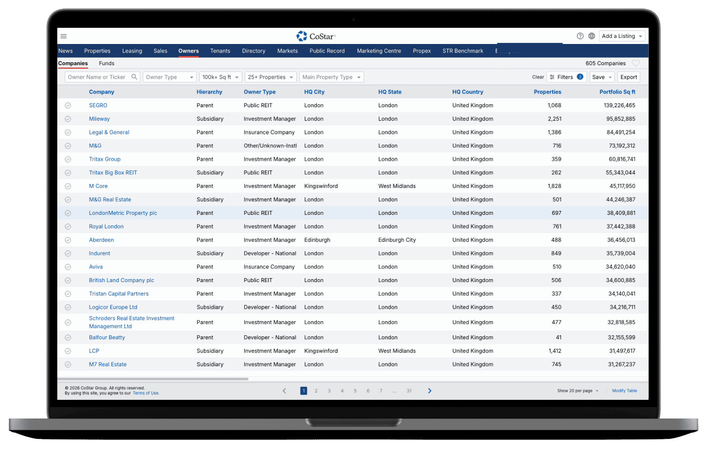 CoStar’s dedicated Owners module gives you an aggregated view of the largest owners of commercial real estate, their portfolios, investment activity and key contacts.