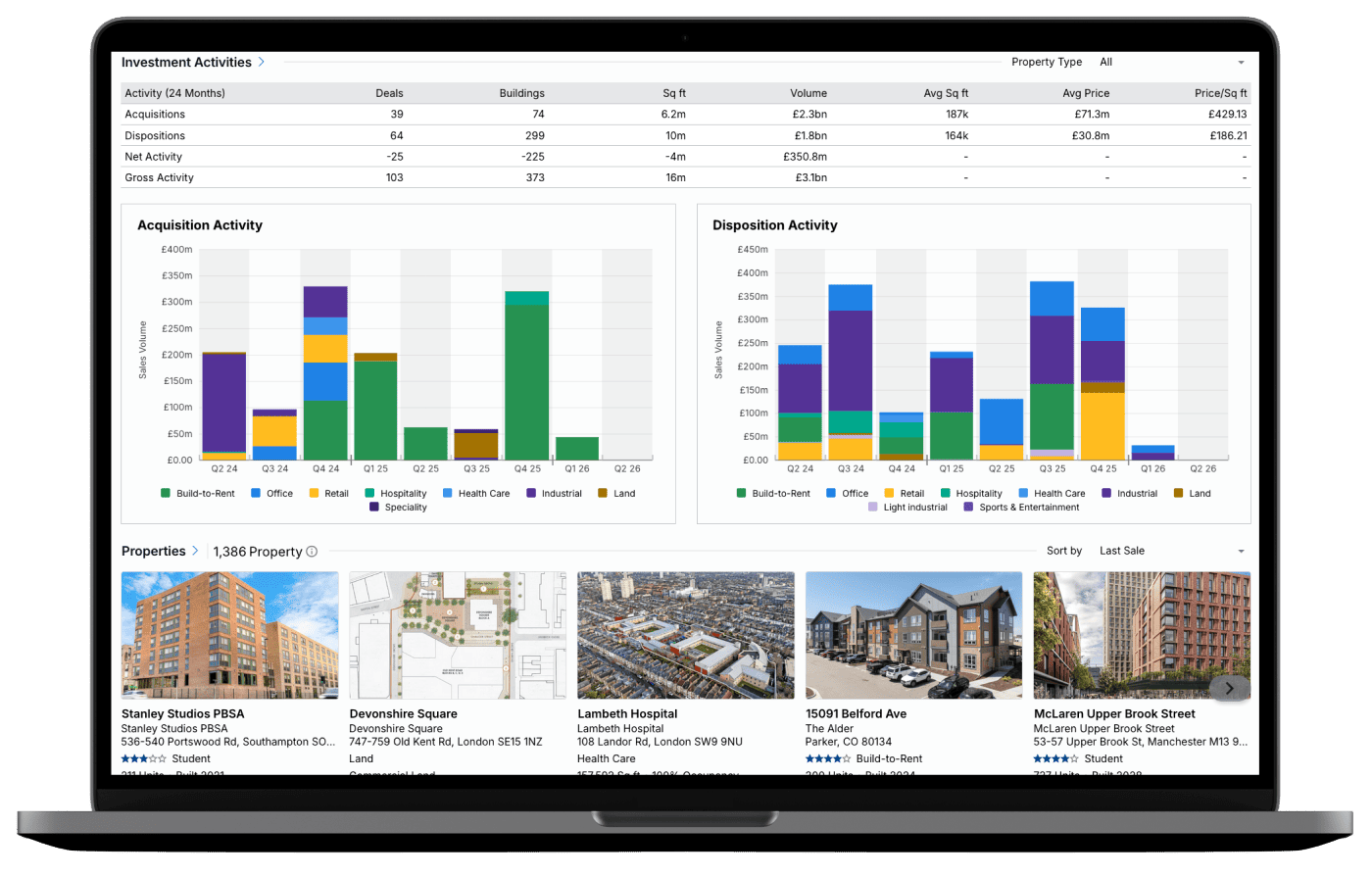 Use a range of intuitive search filters including owner type, portfolio composition and transaction history to quickly identify suitable owner and investor targets.