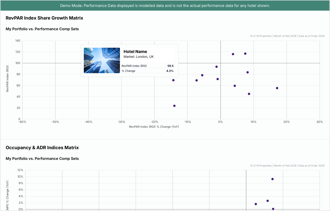 Illustrate to owners the necessary balance between occupancy and rates to outperform competitors and increase profits. Analyze portfolio performance with the capability to delve into specific clusters or groupings.