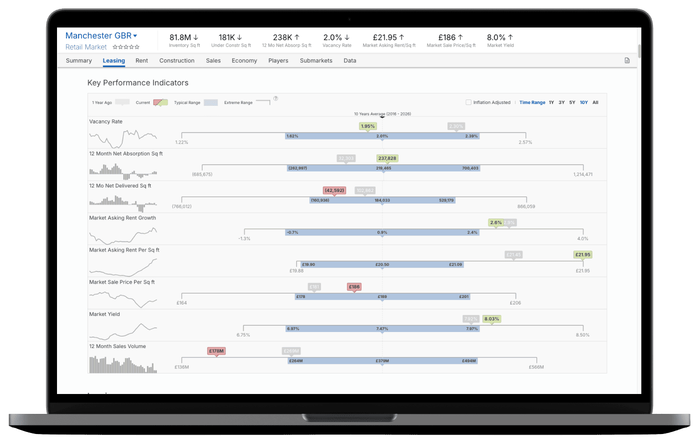 Access in-depth analytics and forecasts at the market and submarket level—or for a custom set of properties—to analyze current and future market conditions.