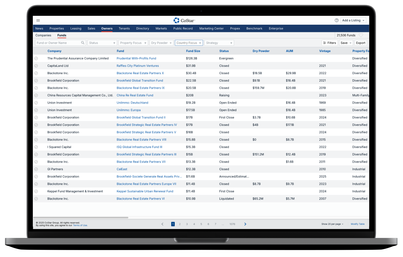 See information on over 13K commercial real estate investment funds, connected with CoStar’s database of property records, listings, sale comps and contact data.